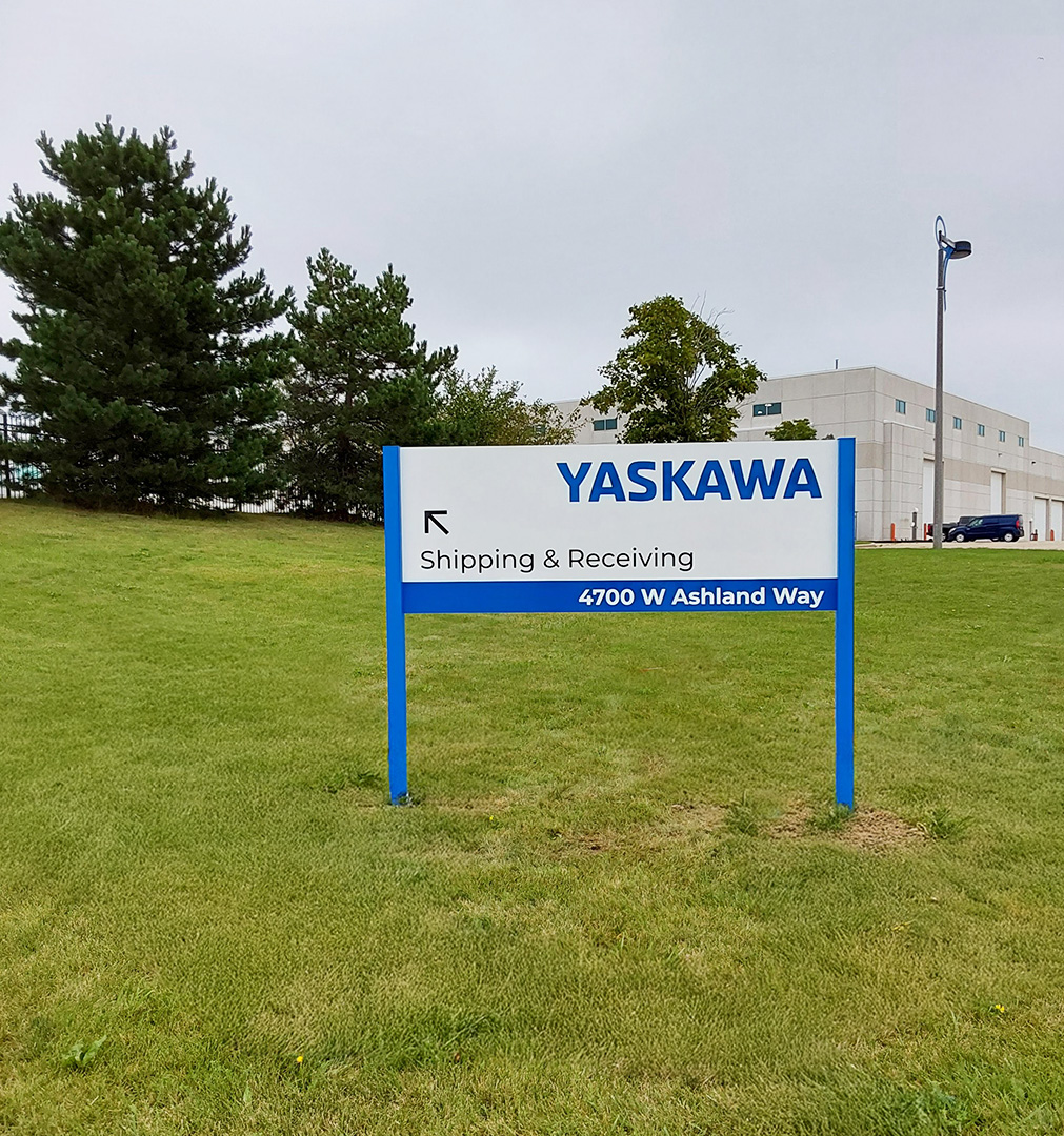 For Yaskawa Manufacturing, we delivered a cohesive signage package designed to enhance visibility, safety, and wayfinding across the facility. The project included two sets of channel letters for strong brand presence, custom-shaped dock signs to support efficient operations, directional post-and-panel signage for clear navigation, and comprehensive building safety signage to meet compliance and functional needs.